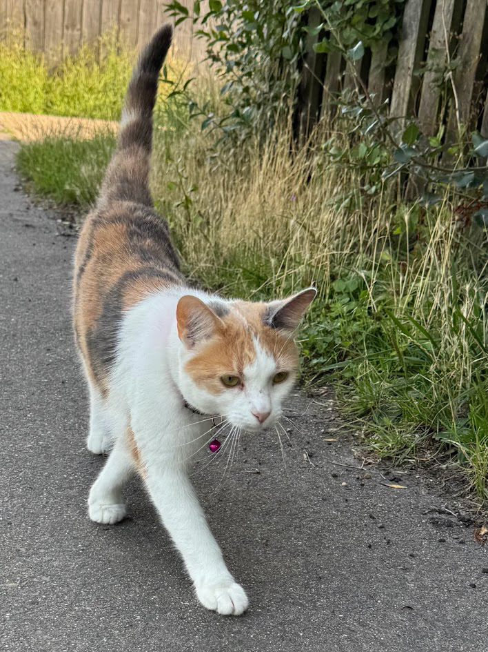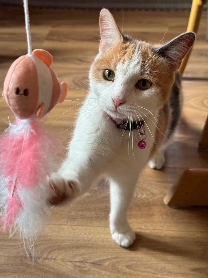 This is a beautiful and friendly cat! She has been a joy to take care of and I've loved getting to know her.