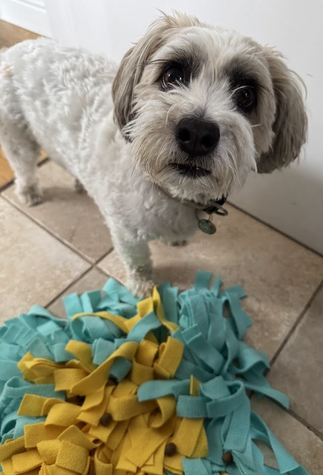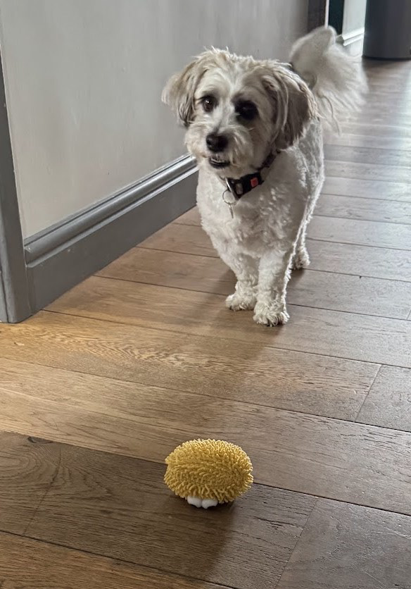 This cute dog is a mixed breed with gorgeous brown eyes. I had the opportunity to provide a drop-in for him recently and it was a pleasure getting to know him.