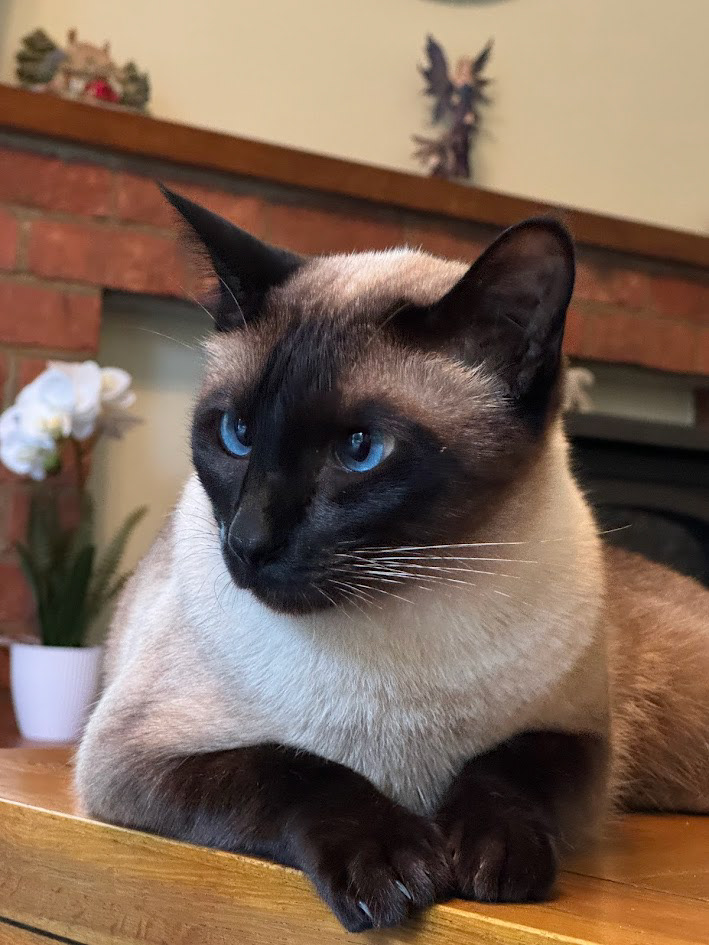 This friendly Siamese cat has beautiful eyes. He is a joy to visit and I'm very happy to have him as part of the pack. ​​​​​​​