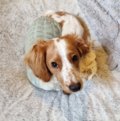 This gorgeous Sprockerpoo is three years old with a heart as soft as their curly ears. A beautiful mix of Cocker Spaniel, Miniature Poodle, Springer Spaniel and just a hint of Bichon Frise - but to us, they are simply perfect. Gentle, affectionate and endlessly loyal, this Sprockerpoo is more than just a pet - they're our fur-baby. Watching them become the most caring big sibling to our Miniature Dachshund has only made us love them more. This Sprockerpoo brings warmth, joy and so much love into our lives every single day.